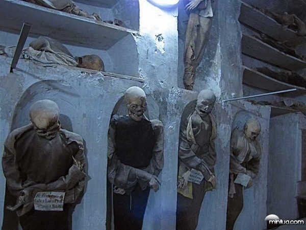 Em Palermo, na Itália, existe um dos museus mais macabros do mundo, afinal ele tem como temática a morte. Lá existem mais de oito mil corpos expostos ao público.